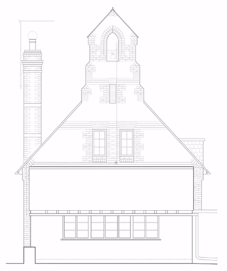 It features distinctive architectural elements including a former school bell tower, vaulted ceilings, and stone mullion windows, and Raw Studios helped to reconfigure the property as a multi-bedroom family home with an adjoining annex.